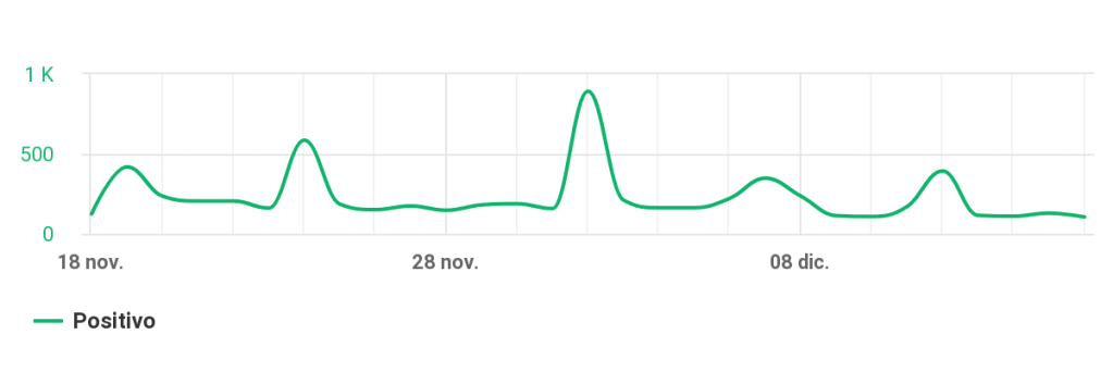 - El número de menciones positivas disminuyó de 1.4k a 1.1k, una caída considerable de aproximadamente el 21%.