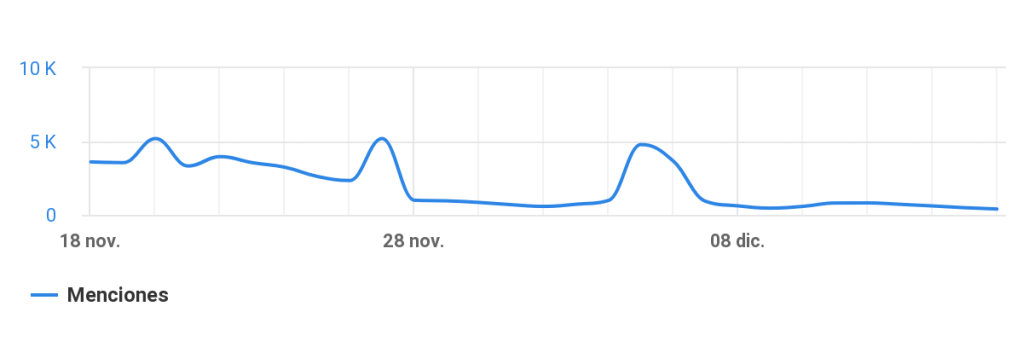 - Ha habido una disminución considerable en el total de menciones de 12.1k a 4.4k (aproximadamente un descenso del 64%).