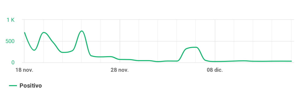 - Las menciones positivas han disminuido enormemente de 829 a 203 (aproximadamente un descenso del 76%).